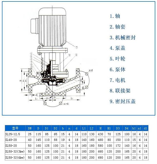 二、SL型玻璃鋼管道泵技術(shù)參數(shù):