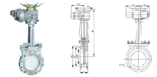 電動(dòng)刀閥,電動(dòng)刀形閘閥的構(gòu)造圖及主要外形及連接尺寸(mm)