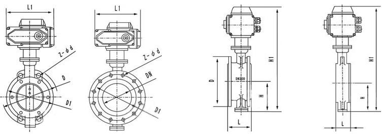 電動(dòng)對(duì)夾式蝶閥外形尺寸