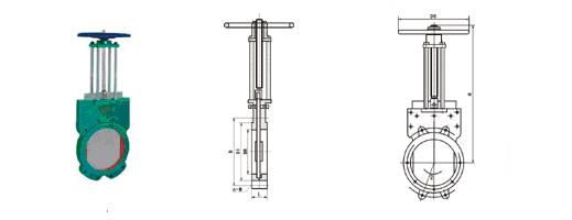 漿液閥Z73X,對夾式漿液閥,鑄鐵漿液閥,球鐵漿液閥的構(gòu)造圖及主要外形及連接尺寸(mm)